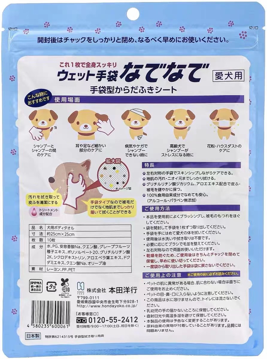 高效清潔:我們的免洗清潔手套采用獨特的清潔配方,可以快速去除污漬和細菌,讓您的狗狗更加干凈健康。